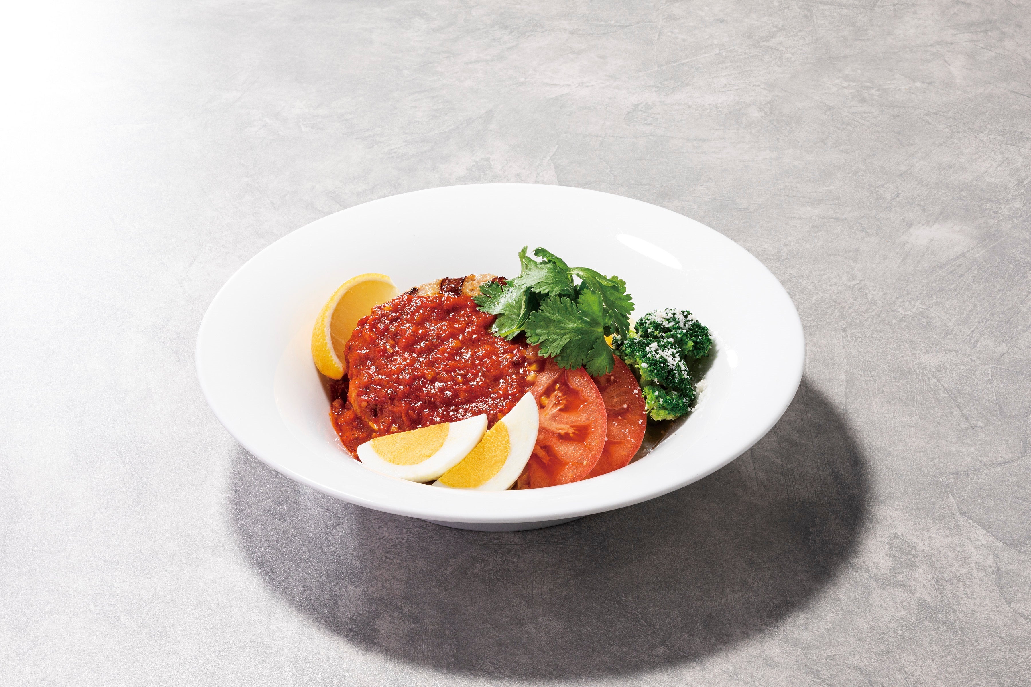 「ハリッサ」とは、唐辛子をベースにさまざまなスパイスをブレンドしたチュニジア発祥の調味料で、デニーズでは、オリジナルの配合で数種のスパイスをブレンドし、パプリカをベースに辛味をおさえて食べやすく仕立てました。スパイシーなソースがハンバーグの肉汁と口の中でとけあってクセになる味わいです。