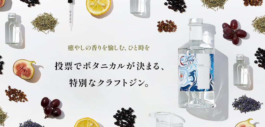 独特のボタニカルを使⽤することで、個性が引き⽴つクラフトジンですが、そのボタニカルをお客さまの投票によって決定します。今回は、「OASIS」をテーマに、ボタニカルを選定しました。