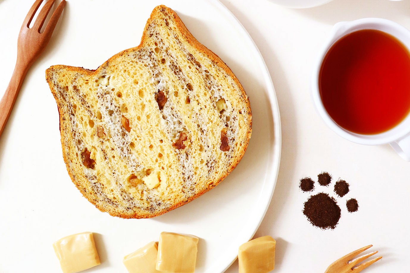 ほろ苦いキャラメルと相性が良いアールグレイ生地を合わせることにより、ねこねこ食パンの中でも群を抜いて香り高い期間限定フレーバーに仕上げました。