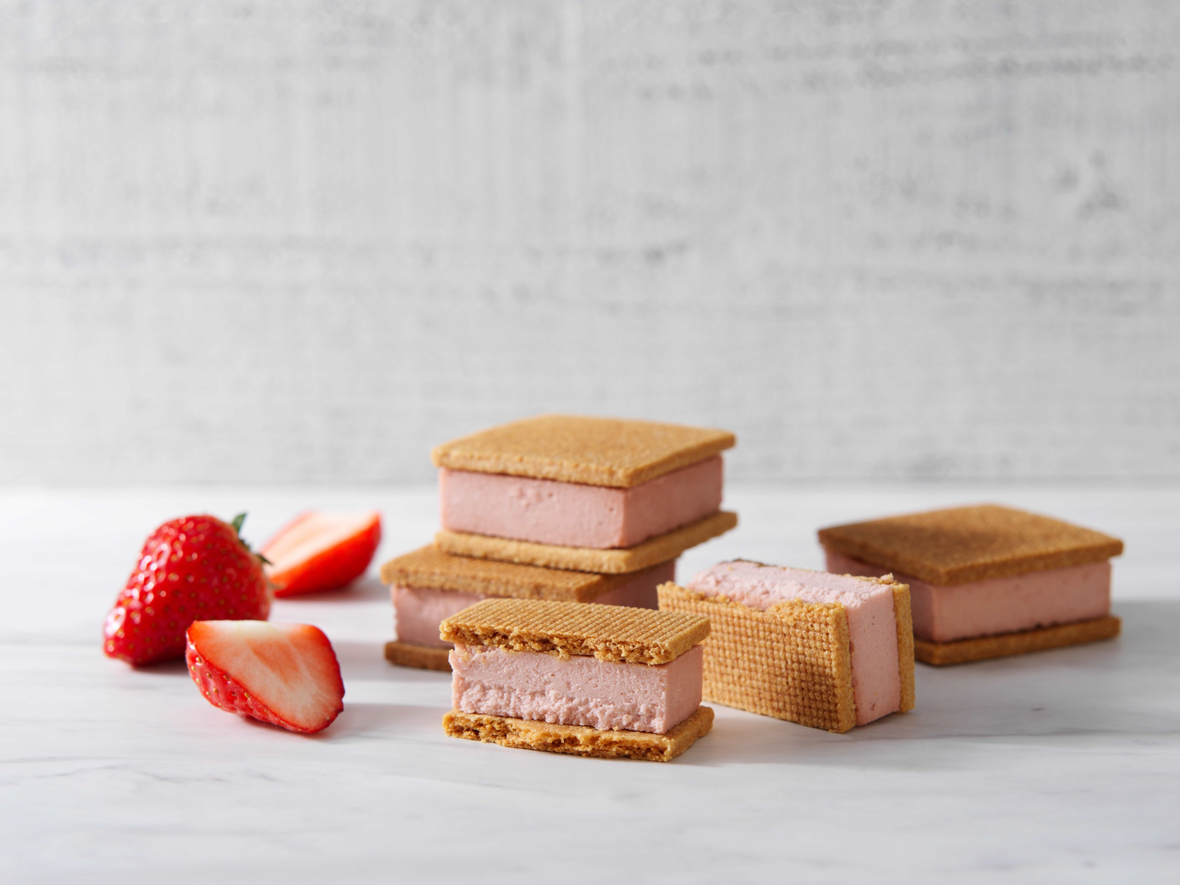 北海道産生クリームとオーストラリア産クリームチーズ、とちおとめ果汁をブレンドしじっくりと低温で焼き上げたベイクドチーズケーキをしっとりとしたサブレでサンドしました。