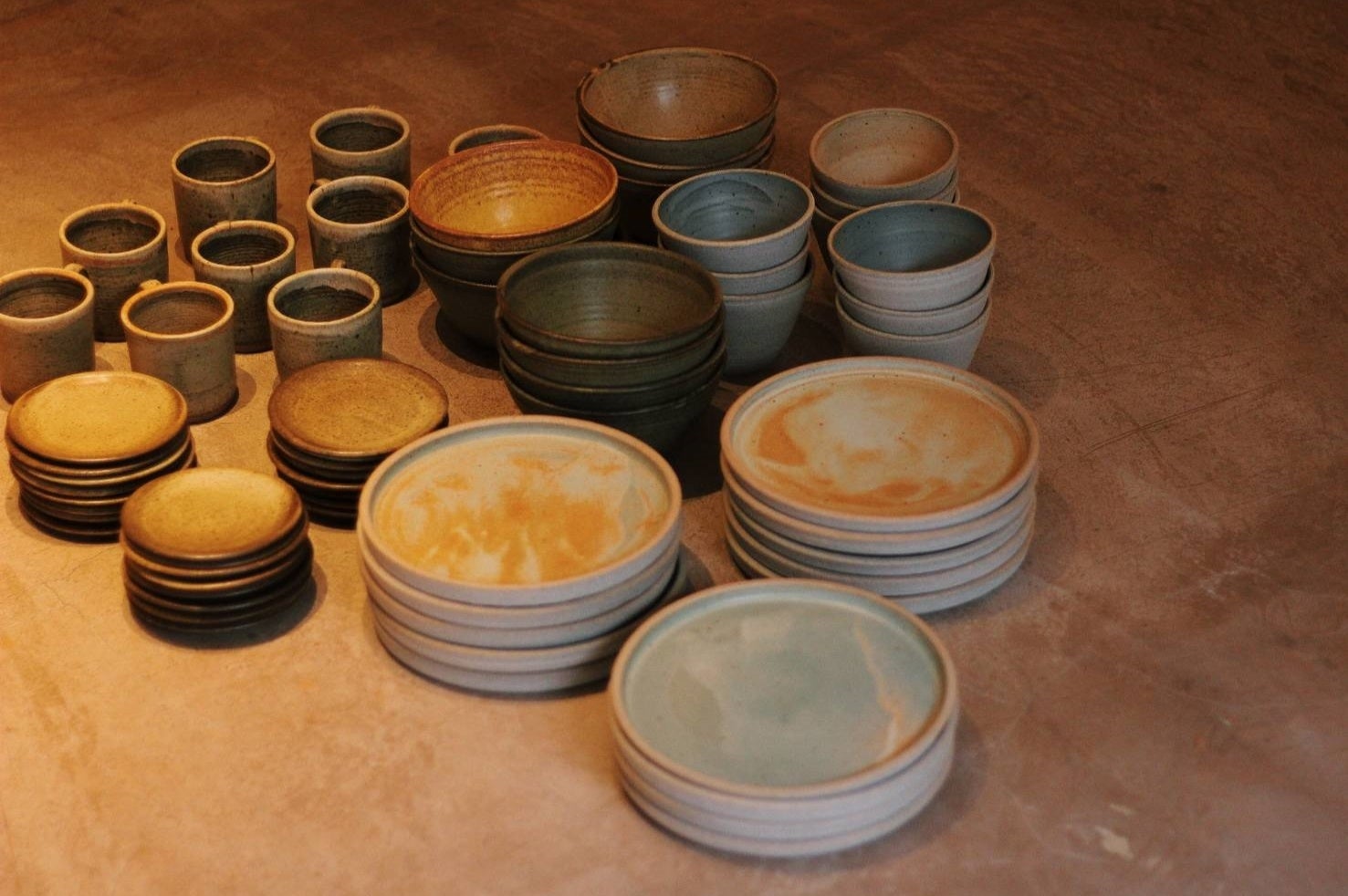 各時間帯の料理を盛り付けるテーブルウェアは、仙台「Echoes」でもおなじみ、ロサンゼルス在住の日本人陶芸家・Shoshi Watanabeによるもの。“料理がのってはじめて完成する”という考えのもと制作された器の数々は、緻密に配合された釉薬がもたらす力強くドラマチックな表情が魅力です。