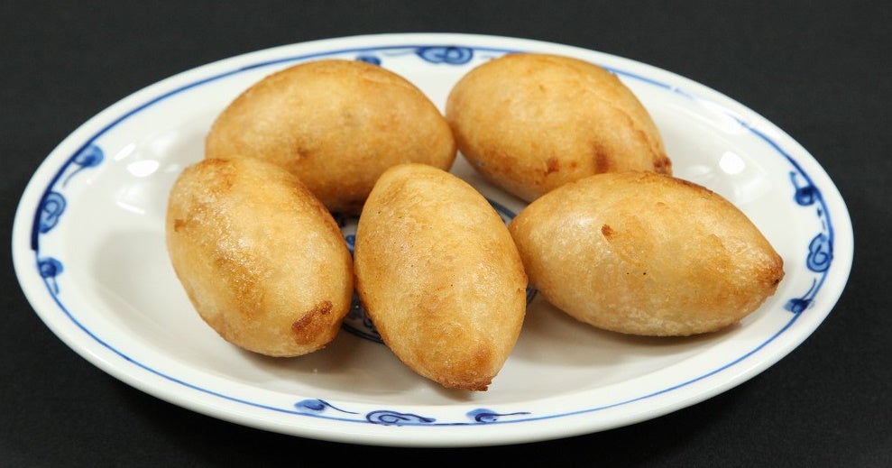 塩味を効かせた7種の具材(チャーシュー・豚肉・鶏肉・干しえび・大根・干しシイタケ・きくらげ)を餅粉の皮で丁寧に包み、冷凍でお届けいたします。外はサクサクのモチモチ皮と、とろりとこぼれる五目餡が絶妙にマッチします。ご自宅で揚げたてをご賞味ください。