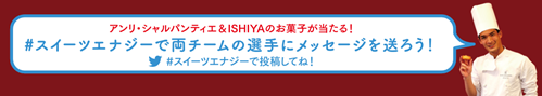 ツイッターにて「#スイーツエナジー」のハッシュタグをつけて両チームの選手にエールを投稿。