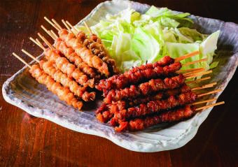 福岡の地元で愛されるソールフードとり皮。同店のとり皮は鶏の中でも一番柔らかくクセのない首の皮を使用しています。外はカリッ中はジューシーな、博多の人々を喜ばしてきた「博多とりかわ」をタレとしおでお楽しみいただけます。