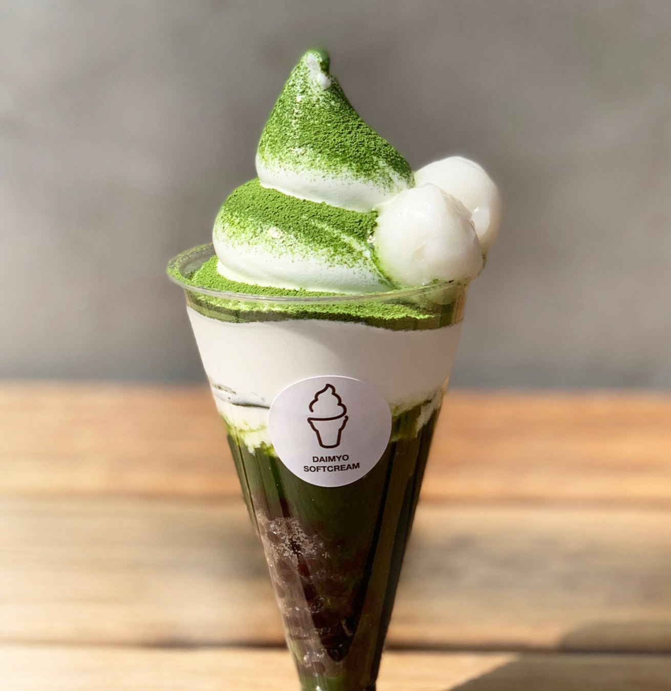イタリア製の高級ソフトクリーム機を用いたマシュマロのようなフレーバ-の濃厚ソフトクリームと、甘く旨の強い福岡の「八女抹茶」、小豆が絶妙にマッチした「和テイスト」の一品です。