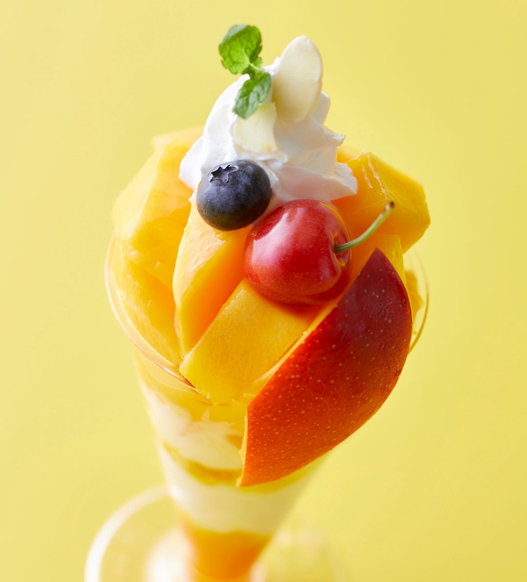 完熟した「太陽のタマゴ」は、糖度15度以上で甘味たっぷりジューシー。手作り杏仁と2種のアイスがおいしさを引き立てます。