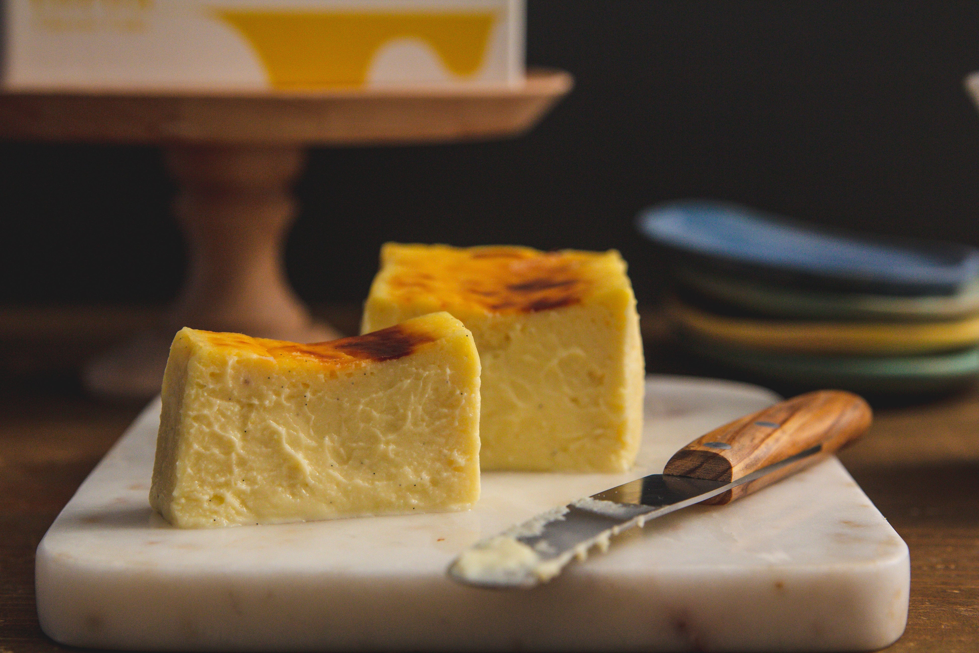 試行錯誤を繰り返し、バニラビーンズで【濃厚な甘い香り】、自家製の焦がしキャラメルクリームで【複雑で香ばしい香り】、発酵バターで【コク深く芳香な香り】を加えました。そして口溶けにこだわり、ベストな焼き時間を徹底追及。湯煎焼きでしっとりと仕上げ、チーズの濃厚さをしっかり感じながらもとろける口溶けに仕上げました。3つの香りととろける口溶けにより、誰もが好きなチーズケーキでありながらも、これまでにない極上の味わいを実現しました。