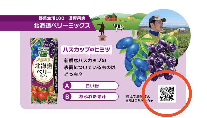 野菜生活100に使用されているフルーツの美味しさのひみつのクイズをARで農家さんが紹介します。