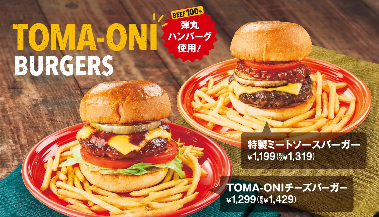 ■弾丸ハンバーグを1枚丸ごと使用した“TOMA-ONI BURGERS”