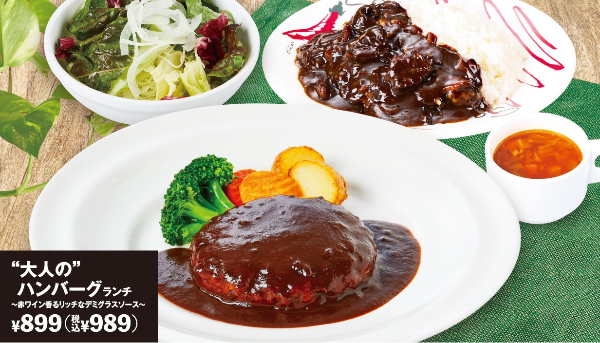 ■超お得なランチのセットメニュー「“大人の”ハンバーグランチ~赤ワイン香るリッチなデミグラスソース~」