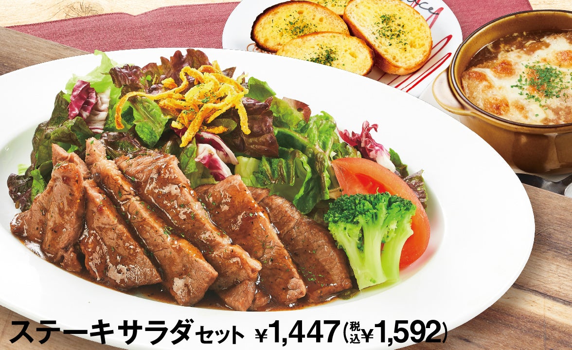 今までありそうでなかった、ワンプレートでサラダとステーキが一度に楽しめる商品です。