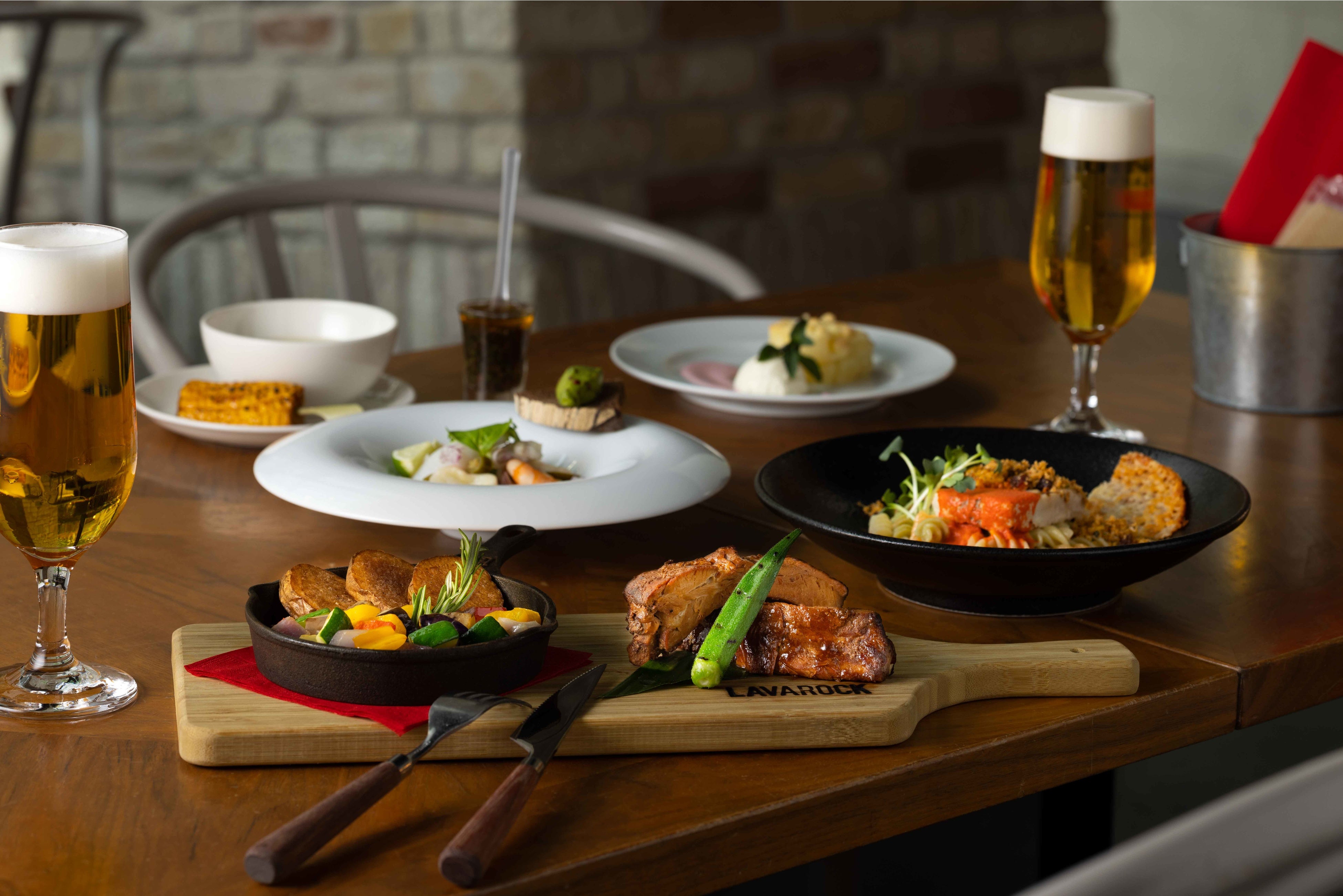 世界各地の調理法・特徴を取り入れた、ニュースタイルのアメリカ料理をお楽しみいただける全5皿のディナーコース。コースの始まりには、パッションフルーツの香りが爽やかな“シーフードセビーチェ”、和テイストのコンディメントで味の変化を楽しむ冷製スープ “ジャパソワーズ”など、暑い夏におすすめの料理をご用意。魚料理には、カジキマグロやフジッリパスタ、クリスピーチーズなどいろいろな味と表情が楽しめる一品を。肉料理は、甘いバーボンBBQソースを絡めてじっくり焼き上げたLAVAROCK自慢のポークバックリブをご堪能いただけます。デザートは、夏に旬を迎える白桃とクランブル生地を焼き上げたアメリカ伝統のお菓子“ピーチコブラー”をココナッツアイスクリームとともにお楽しみください。