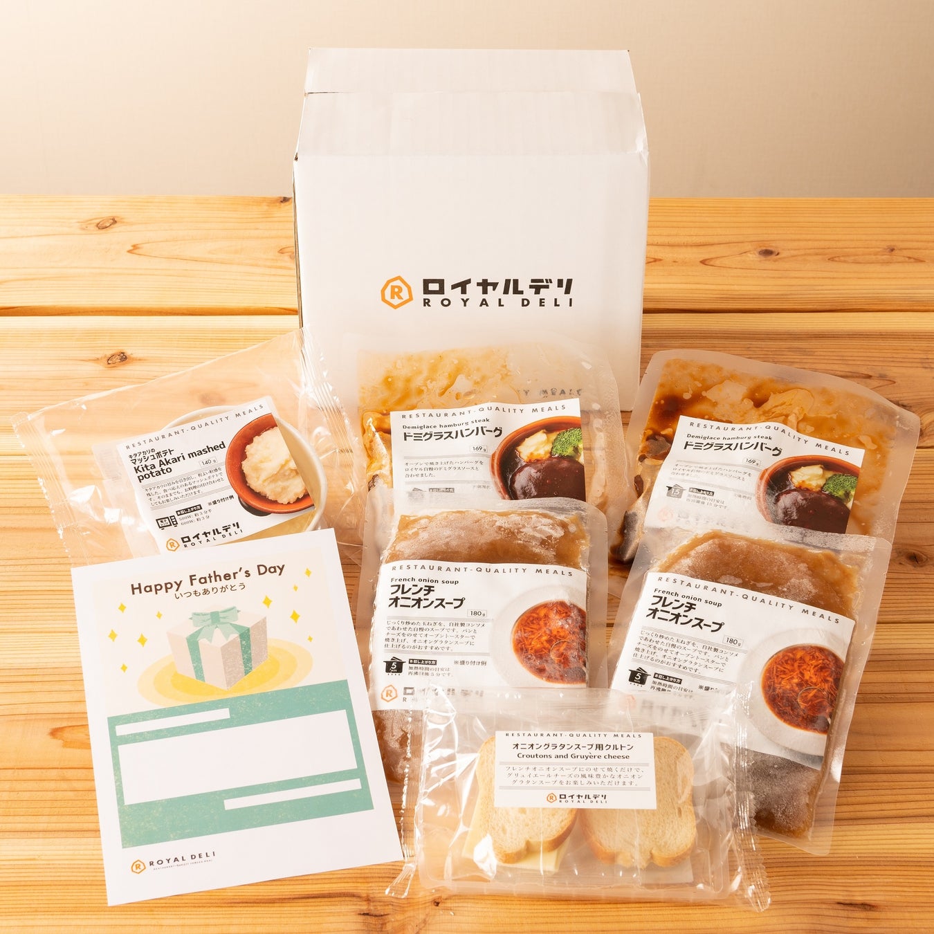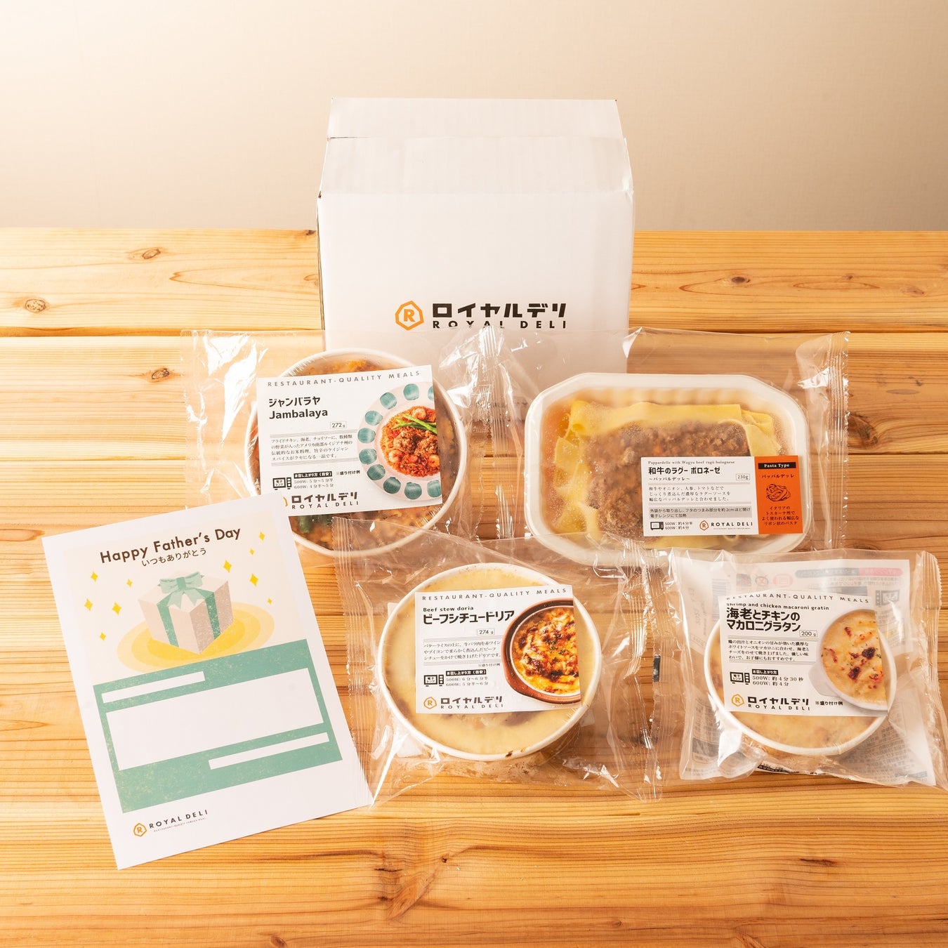 「ロイヤルデリ」は、レストランクオリティ(RESTAURANT-QUALITY)の料理をご家庭で気軽にお楽しみいただけるフローズンミールで、世界各国の料理を展開しています。昨年初登場した父の日向けの特別セットが好評につき、今年も「お父さんへ届ける、『ありがとう』の気持ち」をコンセプトに、父の日に合わせた特別セット2品を期間限定で販売します。商品はロイヤルデリ定番のクラシック洋食を詰め合わせた『≪父の日限定≫洋食ディナーセット』と、リモートワークや忙しい日のランチにぴったりな、『≪父の日限定≫レンジで簡単セット』をご用意。今回は、感謝のメッセージを自由に入力できるメッセージカード付きです。