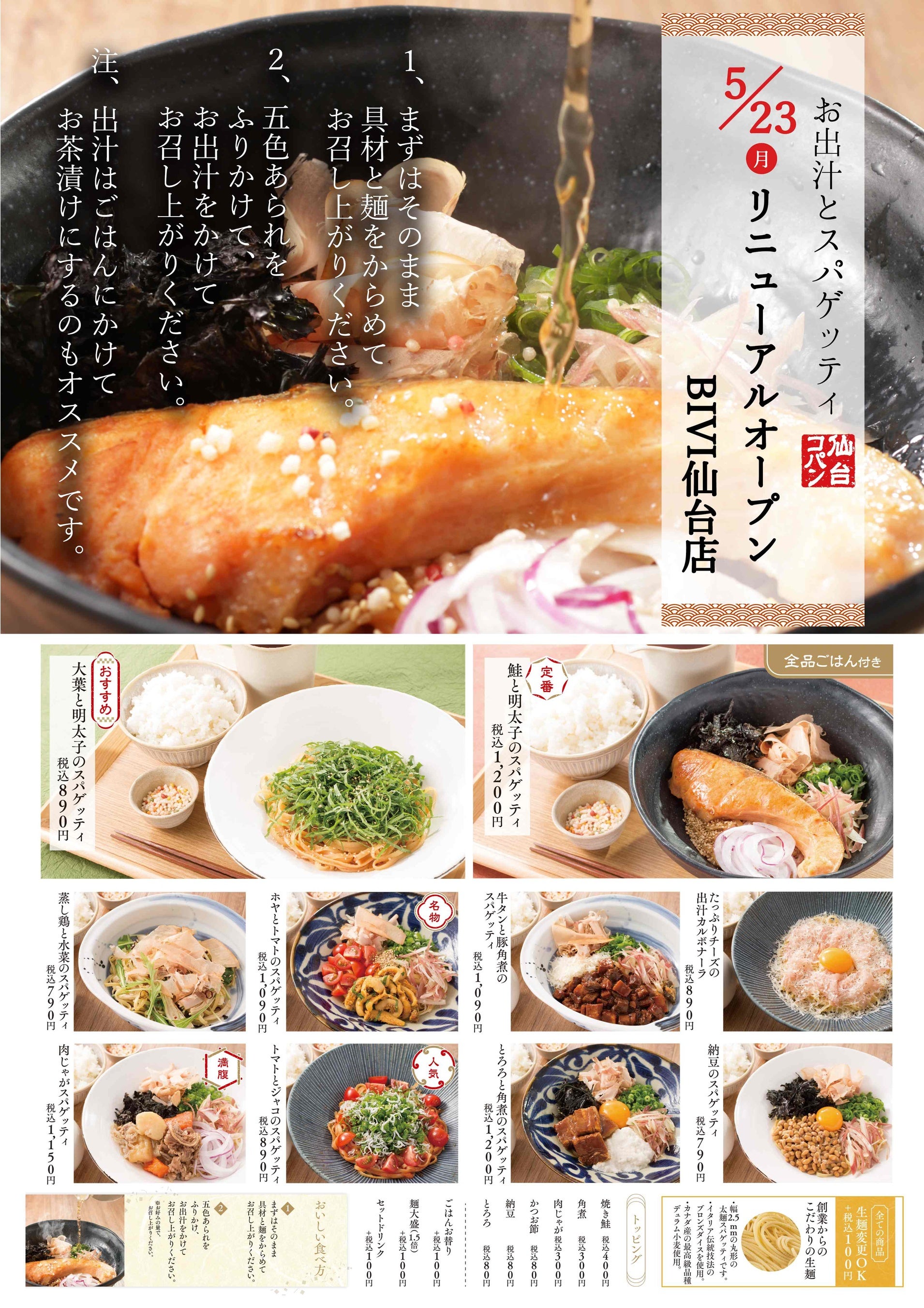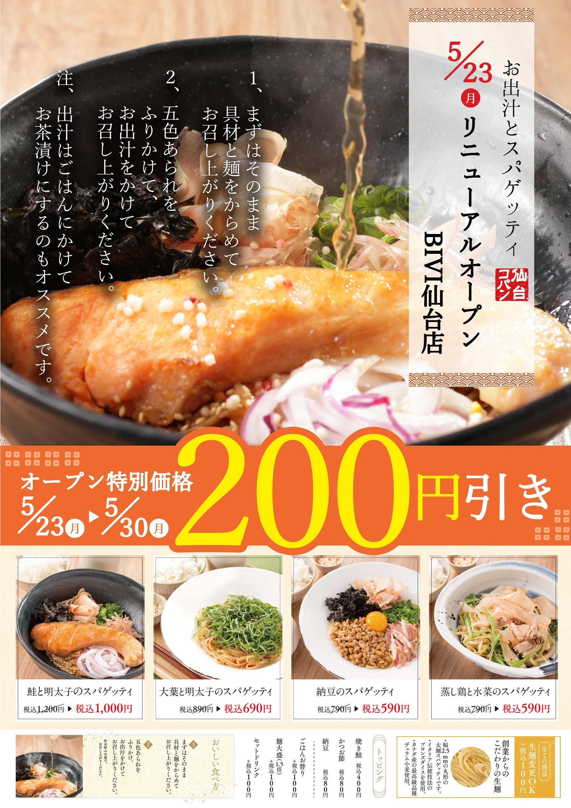 「お出汁とスパゲッティ仙台コパン」が5月23日(月)にオープンします。