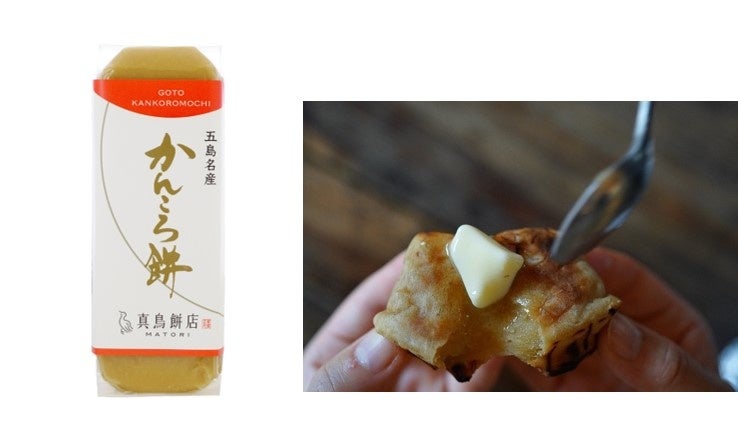 かんころ餅は、五島列島を代表する特産品の1つ。「かんころ」とは干し芋を意味し、もっちりとした食感と素朴で優しいさつまいもの味わいを楽しめる郷土菓子です。今回取り扱う真鳥餅店は原材料からこだわり、かんころ餅に最適と言われている五島産のさつまいも「高系14号」と九州産のもち米を使用しています。そのままでもおいしいのはもちろんのこと、スライスして焼いていただくと香ばしく、芋の甘味ともちもちした食感が増しておいしくお召し上がり