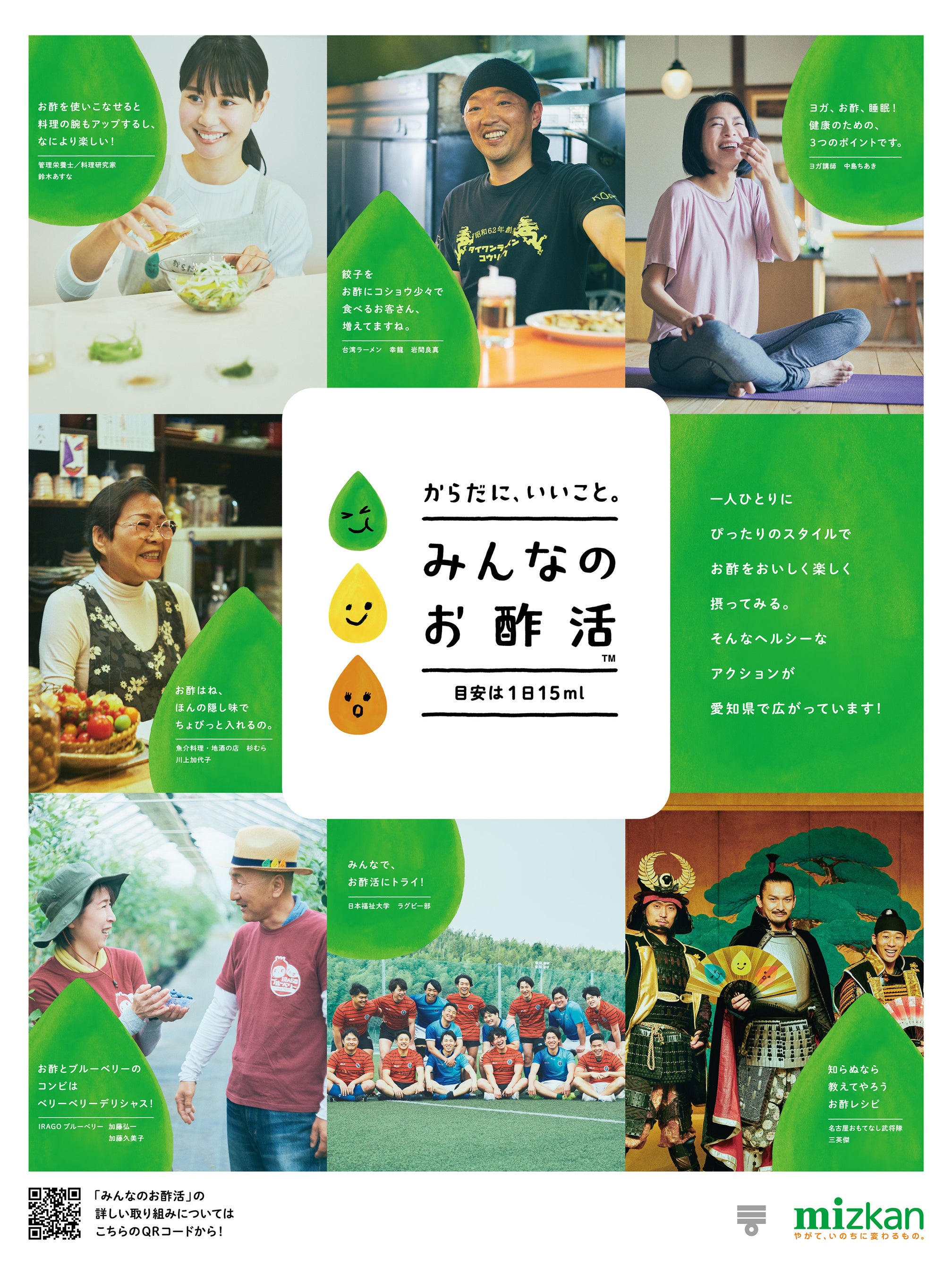 株式会社Mizkan(本社:愛知県半田市、代表取締役社長兼CEO:吉永 智征、以下ミツカン)は、生活にさまざまな方法でお酢を取り入れて楽しく健康に暮らす「お酢体験」の創出・情報発信を行う「みんなのお酢活」プロジェクトを愛知県を舞台に2022年5月19日(木)に発足いたしました。