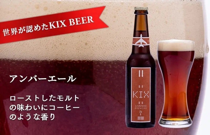 その一部が泉佐野市にある関西国際空港の空港コード「KIX」を名前に冠したビール。ボトルネックには飛び立つ機体、ラベルには関空の滑走路の方角を示す24R、06L、24Rの文字と滑走路ラインを表現。