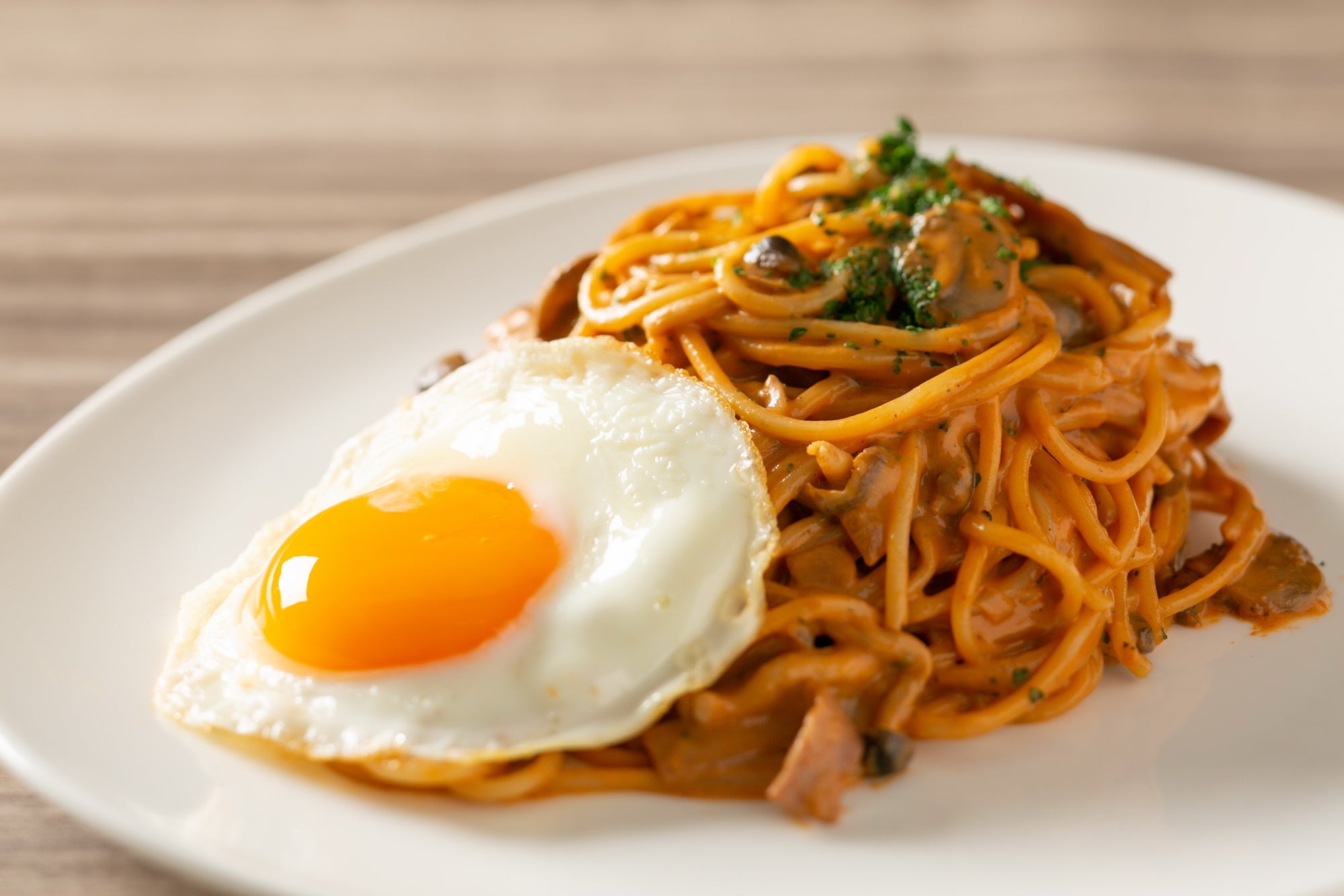 日本発祥と言われ近年のレトロブームとともに時代を超えて愛されるナポリタン。太麺にトマトケチャップの酸味とデミグラスソースのコクを味わう特製ソースを絡め、川崎産“黒川の地玉子”の目玉焼きを添えました。