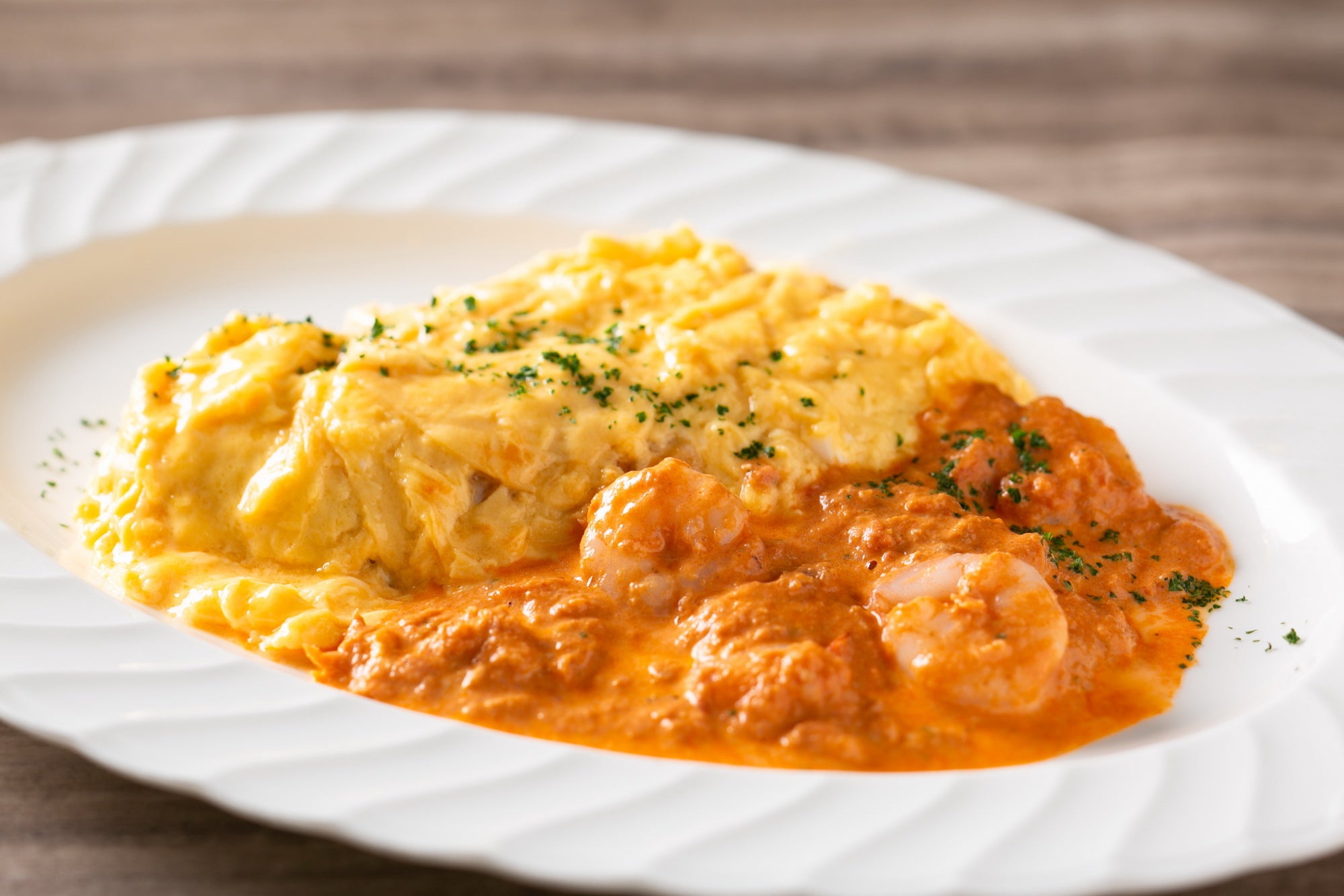 川崎産“黒川の地玉子”を使ったふわふわの卵に、懐かしいシンプルなチキンライス、海老の甘み、トマトソースの酸味を味わっていただきたい自慢のオムライスです。