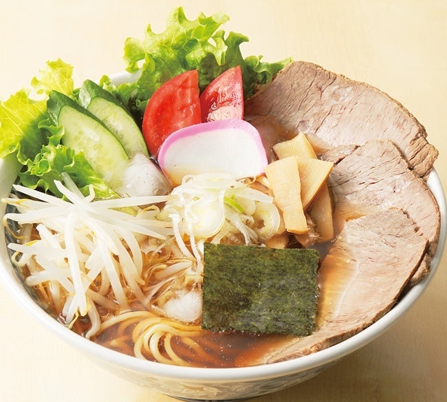 レタス、トマトなどをトッピングし、サラダ仕立てにした横浜高島屋だけの冷しらーめんです。