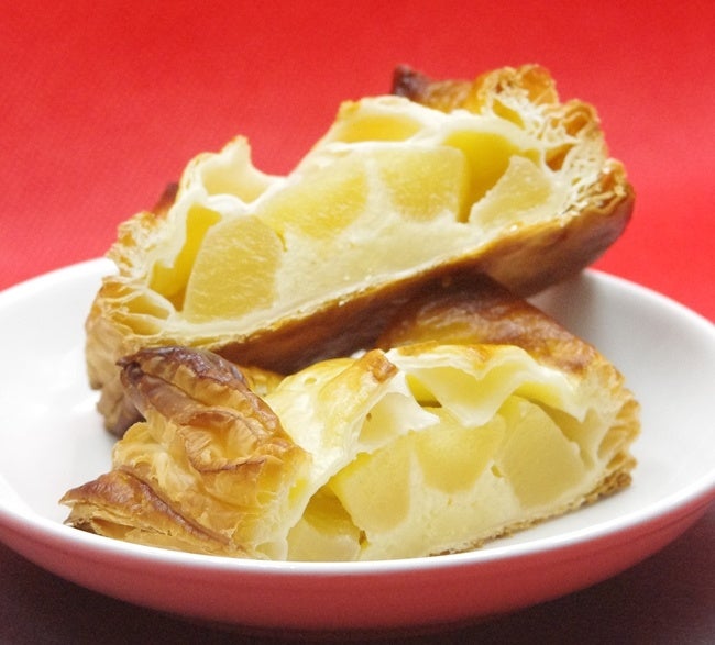 創業100年を超す老舗菓子店<松月堂布川>。6代目・布川寛人氏の若い感性と人柄で、地元の老若男女に親しまれているお店です。今回販売するのは、地元の素材にこだわり、ユニークな発想で作りあげた山形県産紅玉りんごを1/2個使った食べ応え満点のアップルパイ。サクサクしっとりのパイ生地にジューシーなりんごを詰め込んでいます。