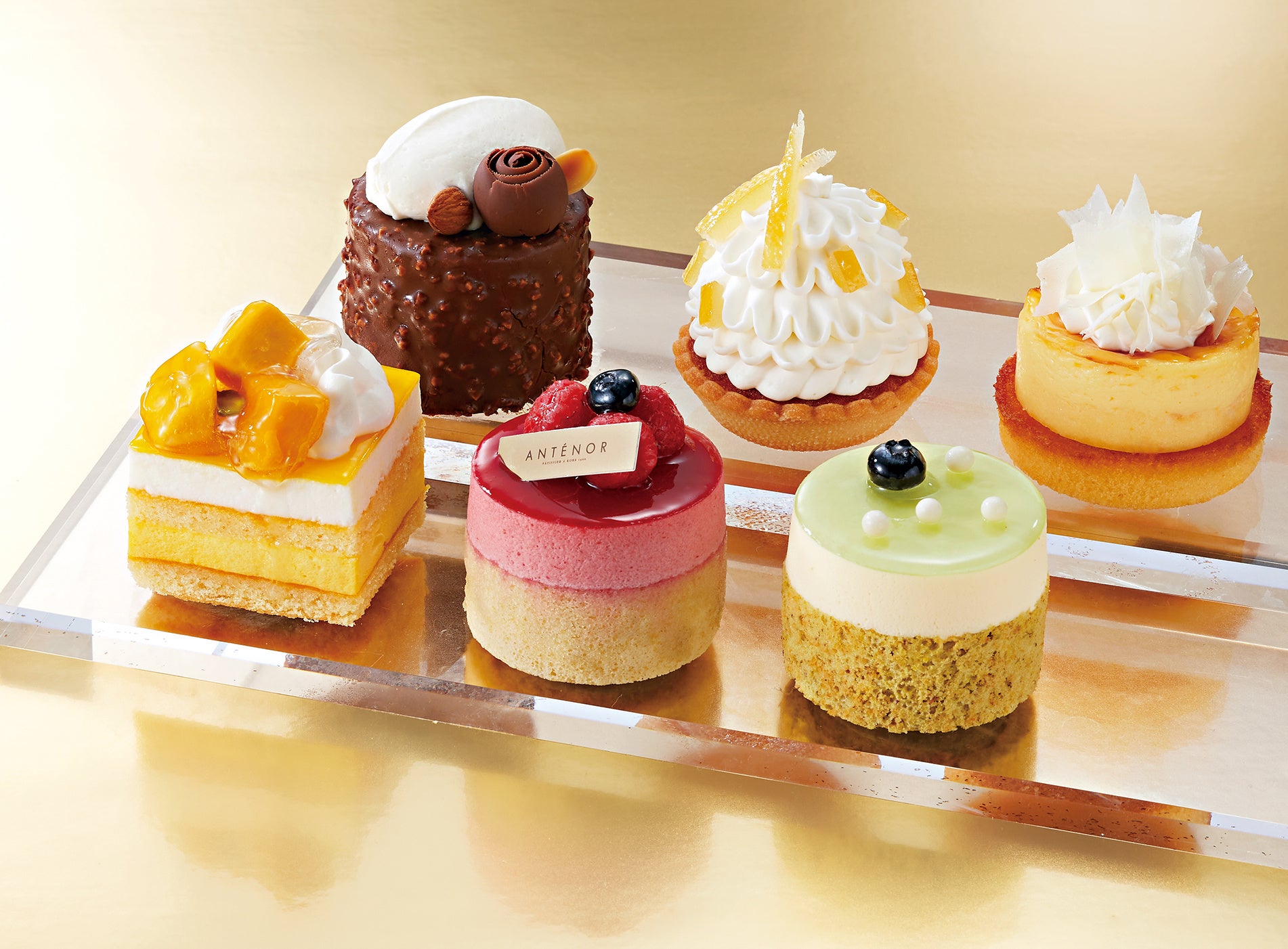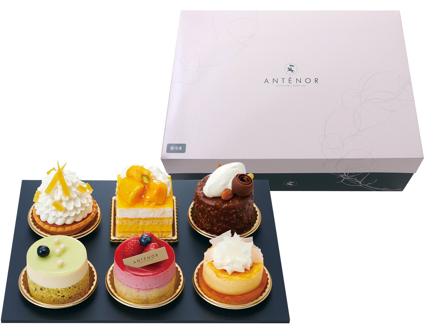 アンテノールの昔からの定番商品「レモンのタルト」をはじめ、シーズンケーキで人気の「マンゴー・レア チーズ」、オリジナルでご用意した「フロマージュ・グラナ」、「フレーズ・ベリー」、「ヘーゼルナッツ・ショコラ」、 「マスカット・パイン」は、店頭でお取り扱いのない特別な味わいのケーキです。