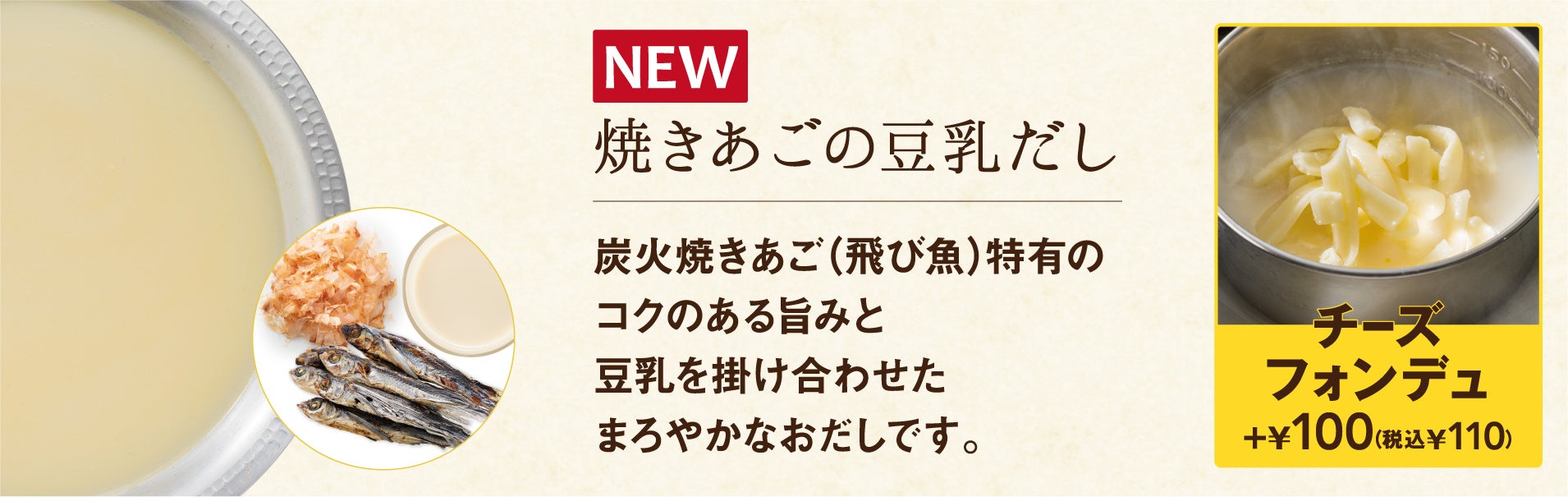 - 九州黒豚とも相性抜群!新作「焼きあごの豆乳だし」