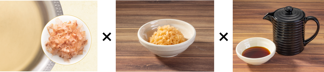 まろやかな鰹の白だしともみじおろし&ポン酢をあわせた“アレンジたれ”の組み合わせ。