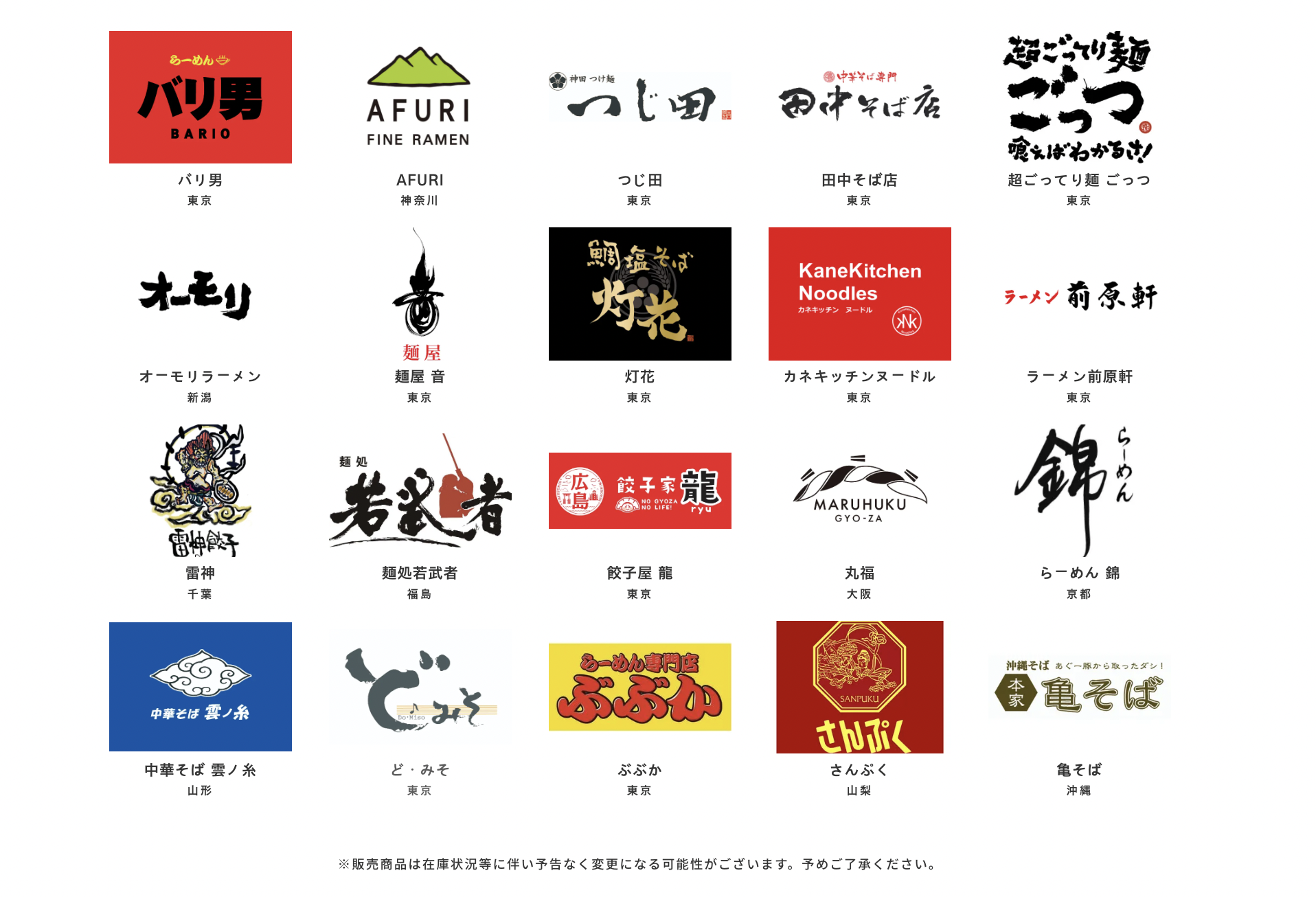 販売商品:ヌードルツアーズで人気の「バリ男」「つじ田」など複数商品