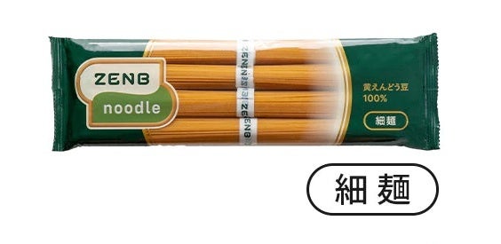 「ZENBヌードル」は豆100%で、豊富な食物繊維と植物性たんぱく質の新主食です。黄えんどう豆をうす皮まで余すことなく使っており、フードロスに貢献するのみならず、動物性原料は使わず添加物に頼らない味づくりで、素材そのもののおいしさを活かしたサステナブルな食品です。