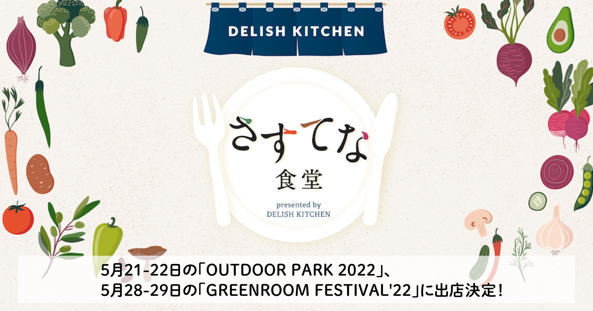 株式会社エブリー(本社所在地:東京都港区、代表取締役:吉田 大成)が運営するレシピ動画メディア『DELISH KITCHEN』は、カラダと地球に優しいサステナブルな食体験を提供するプロジェクト「さすてな食堂」を運営しています。この度、5月21日〜22日まで大阪の万博公園で開催される「OUTDOOR PARK 2022」、5月28日〜29日まで横浜の赤レンガ倉庫で開催される「GREENROOM FESTIVAL’22」にそれぞれ「さすてな食堂」としてのブース出店が決定しました。それぞれのブースでは、ミツカングループの株式会社ZENB JAPANが販売する「ZENBヌードル」、マルサンアイ株式会社が販売する「豆乳シュレッド」等とコラボレーションした、「さすてな食堂」特別メニューを販売いたします。