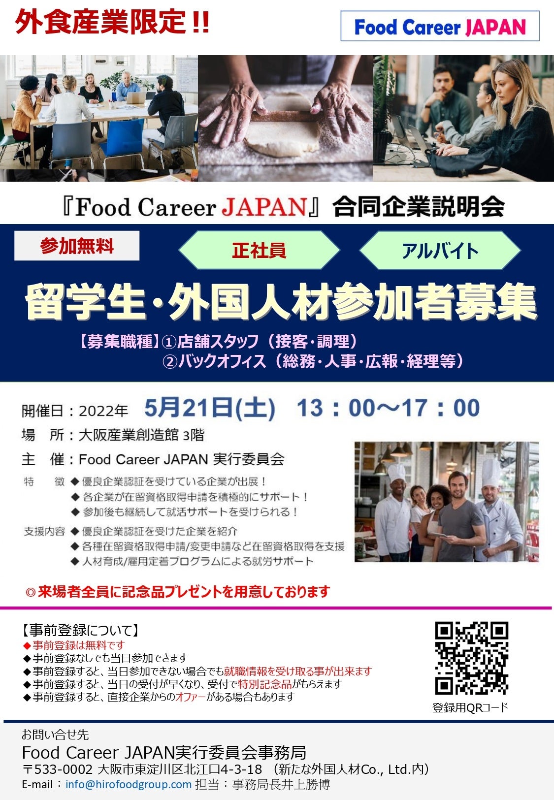 名 称 : 『 Food Career JAPAN 合同企業説明会 』 2022 1st.