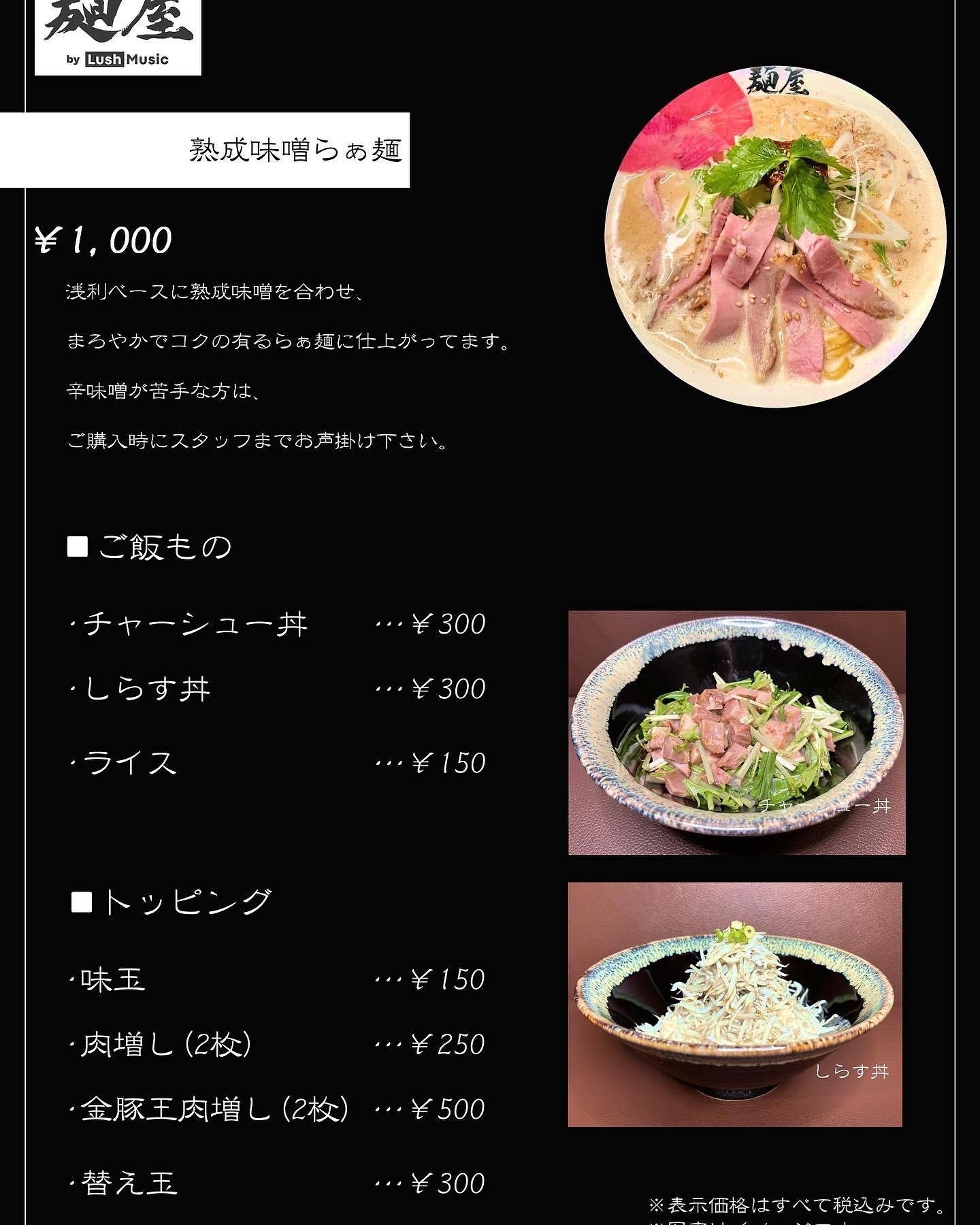 JR焼津駅南口すぐ目の前に2022年4月29日にグランドオープンしたラーメン店「麺屋 by Lush Music」。最近盛り上がりを見せつつある“焼津ラーメン”に一石を投じるべく、食べログ東京ラーメン百名店に数えられる行列店「Soupmen」で修行を積んだ店長のマスターシップさん、マー坊、ベイちゃん夫妻を中心に、この度、オープンとなりました。