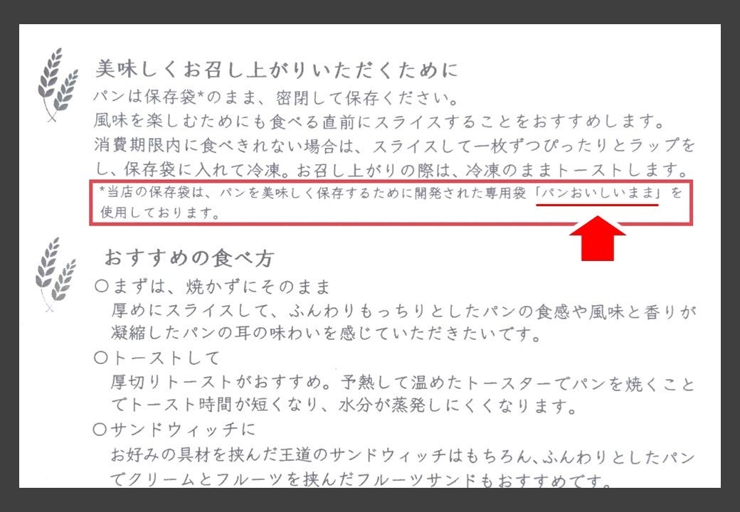 京王プラザホテルは販売するパンに「パンおいしいまま」を採用、お客様への販売の際、保存する場合は包装袋に入れたまま保存するように説明をしている。