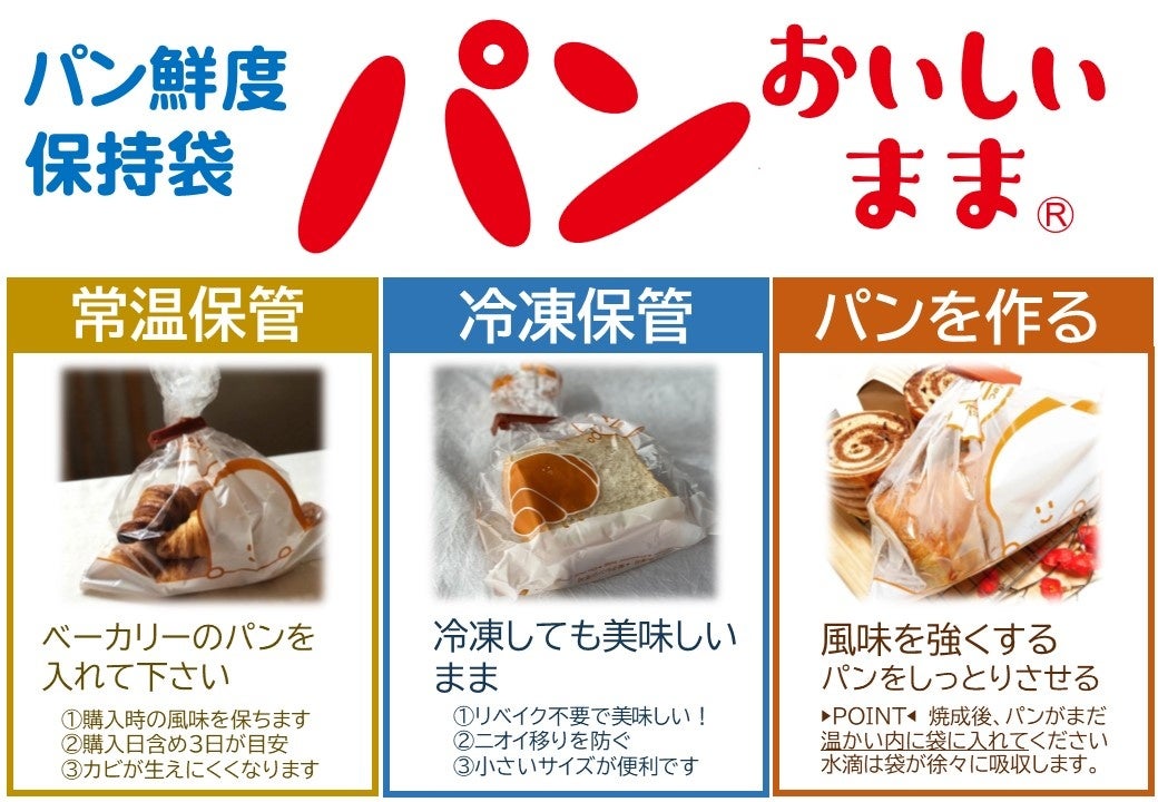 パンをおいしく保つために開発されたパン専用鮮度保持袋、酸化防止力、保香力が高く袋に入れるだけで風味を保持する。