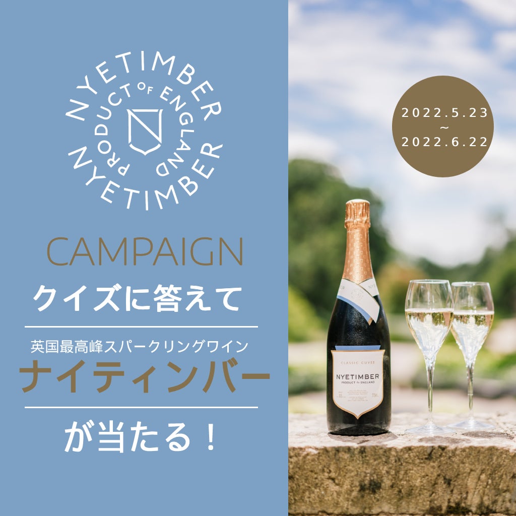 英国最高峰スパークリングワイン〈ナイティンバー〉 (本社:イギリス・ロンドン、代表:エリック・ヘレマ)は、本日5月23日(月)、日本初公式インスタグラムとフェイスブックを開設しました。これを記念して、2022年5月23日(月)~6月22日(水)の間「クイズに答えて〈ナイティンバー〉が当たる!」キャンペーンを実施します。