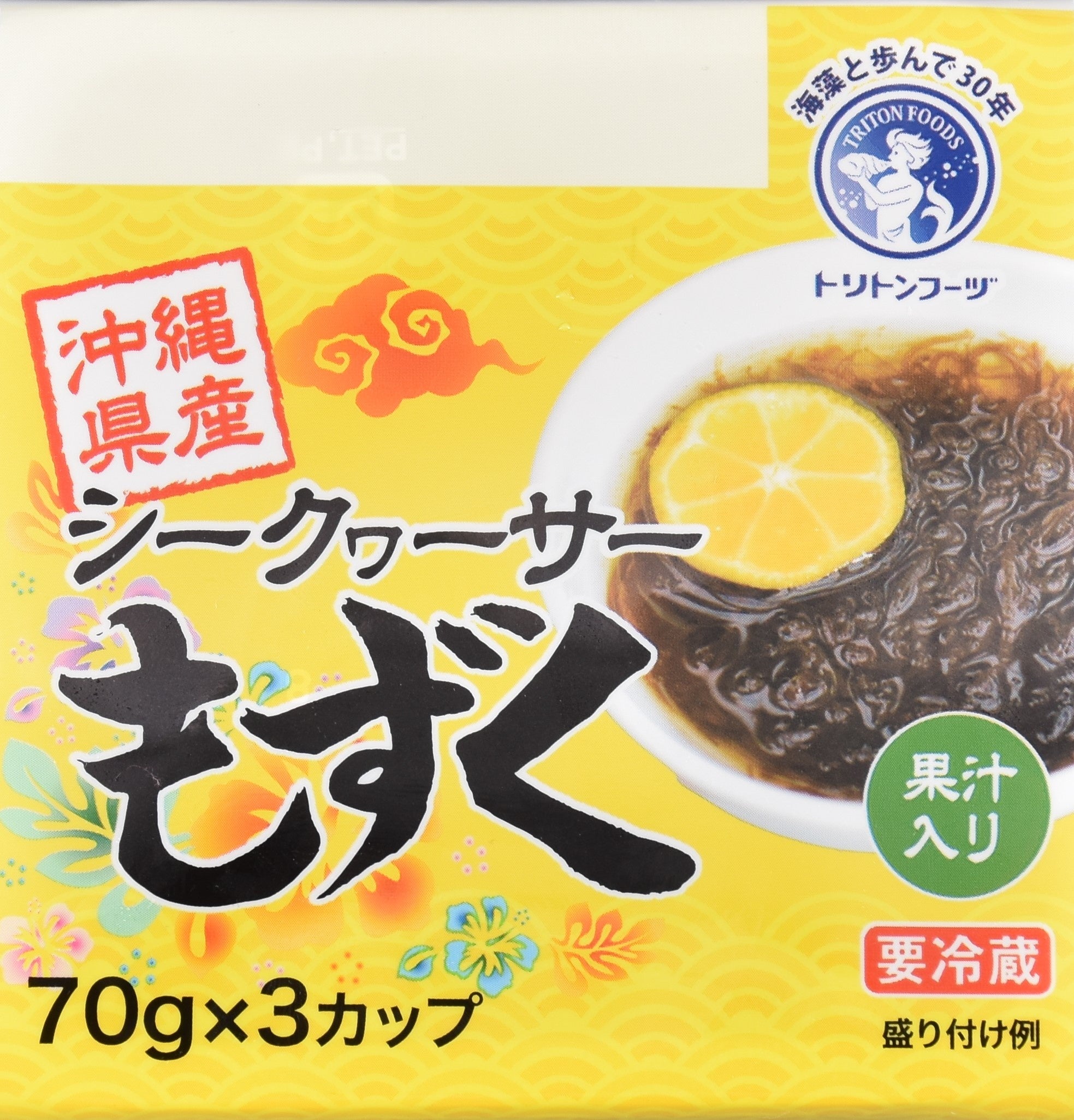 今回、トリトンフーヅより発売する「沖縄県産 シークヮーサーもずく」は、沖縄県産のもずくに、沖縄県産のシークヮーサーをまるごと絞った果汁を使用した、爽やかな酸味が特徴の商品です。相性抜群な2つの沖縄県産の食材を使用し、夏にぴったりな、さっぱりとした風味に仕上げました。
