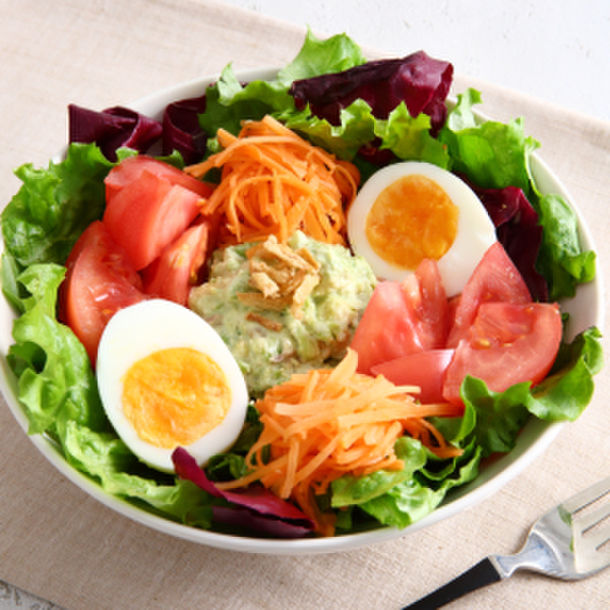 レシピ :キャロットラペとアボカドディップのサラダボウル