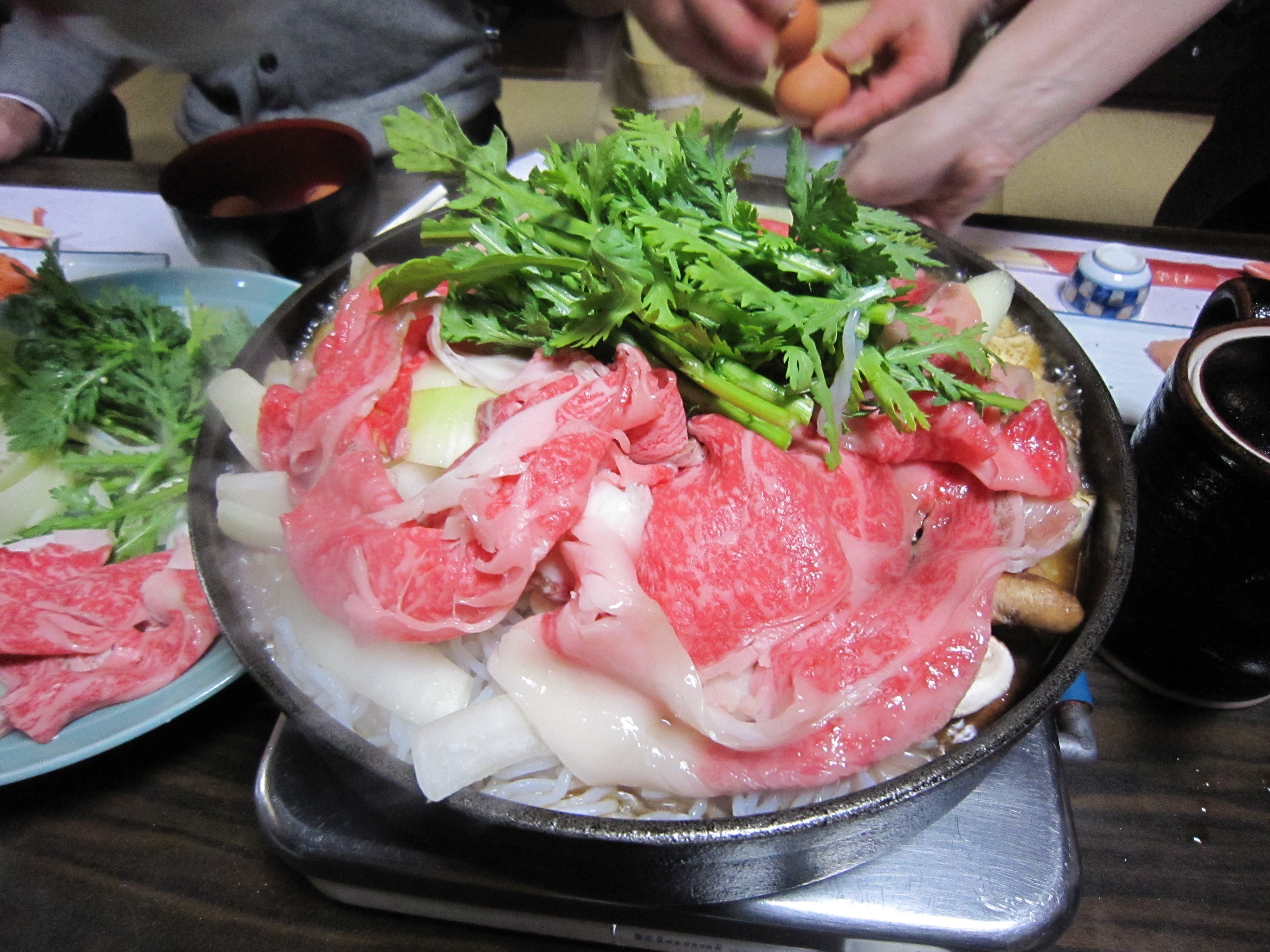 内容:牛すき焼き、ご飯、汁物、香の物など