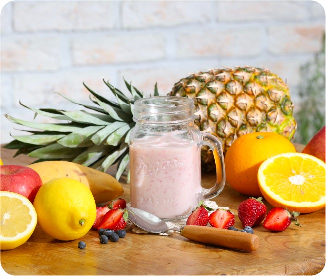 フルーツの果汁・果肉を使い、11種のビタミン・鉄分・食物繊維などがバランスよく摂れるシェイク。1食と置き換えるだけでダイエットと美容をサポート。