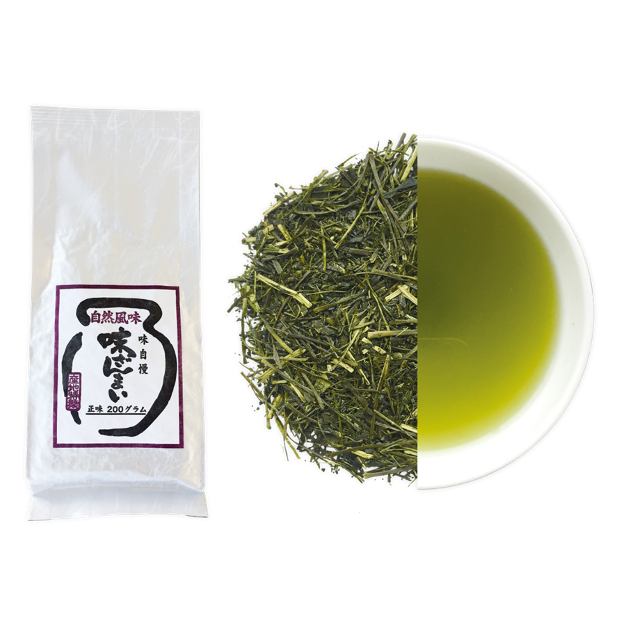 ビタミンを多く含むと言われる煎茶。静岡県産の今年の新芽を蒸し、強火で火入れ焙煎した、香ばしく濃厚でコクのある“味ざんまい”。お茶の葉だけでなく茎や粉の部分も含んだ、お茶の旨みと醍醐味をまるごと味わえます。