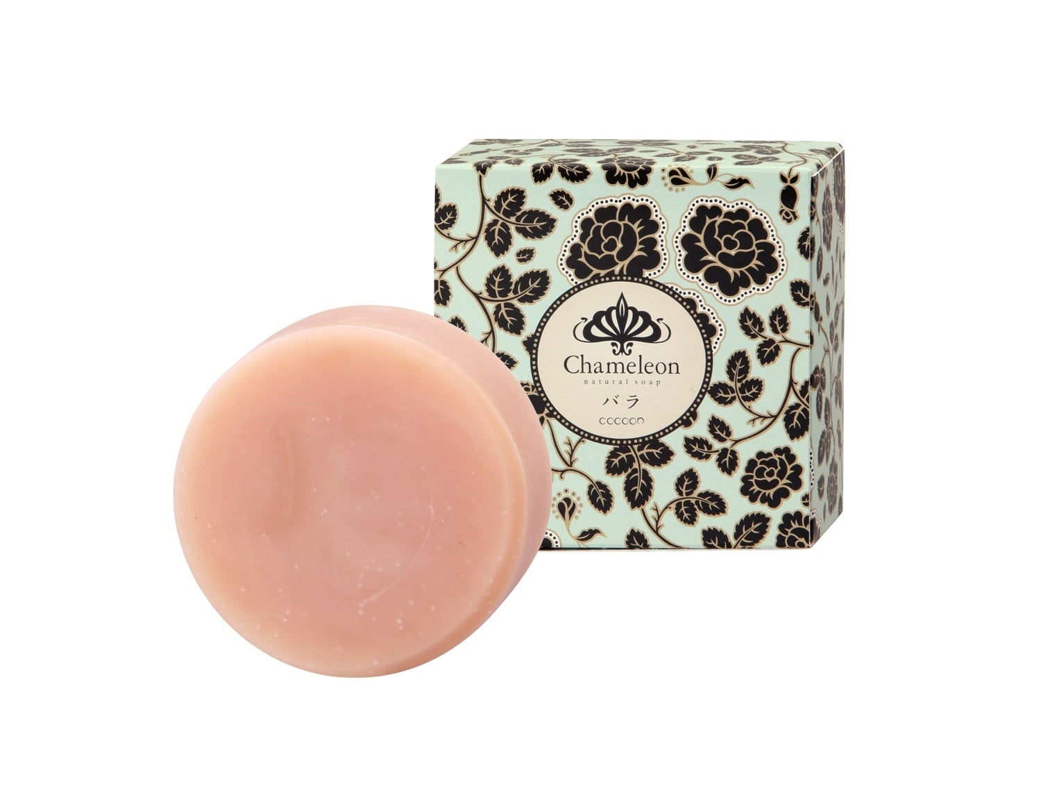 低温で約1,000時間熟成させるコールドプロセス製法で作る石鹸屋。今回のおすすめは、ビタミンを豊富に含むダマスクローズとアルガンオイルをふんだんに使い、弾力のあるもっちり素肌へと導く洗顔石?の“カメレオンソープ(バラ)”。