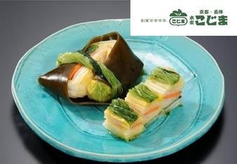 京都・西陣で創業100年余年。五菜昆布合わせは、西陣織をオマージュした創作浅漬けです。あっさり漬け込んだ白菜に人参、生姜、大葉を包み込み、昆布で巻き上げ、薄めの醤油だしで仕上げました。