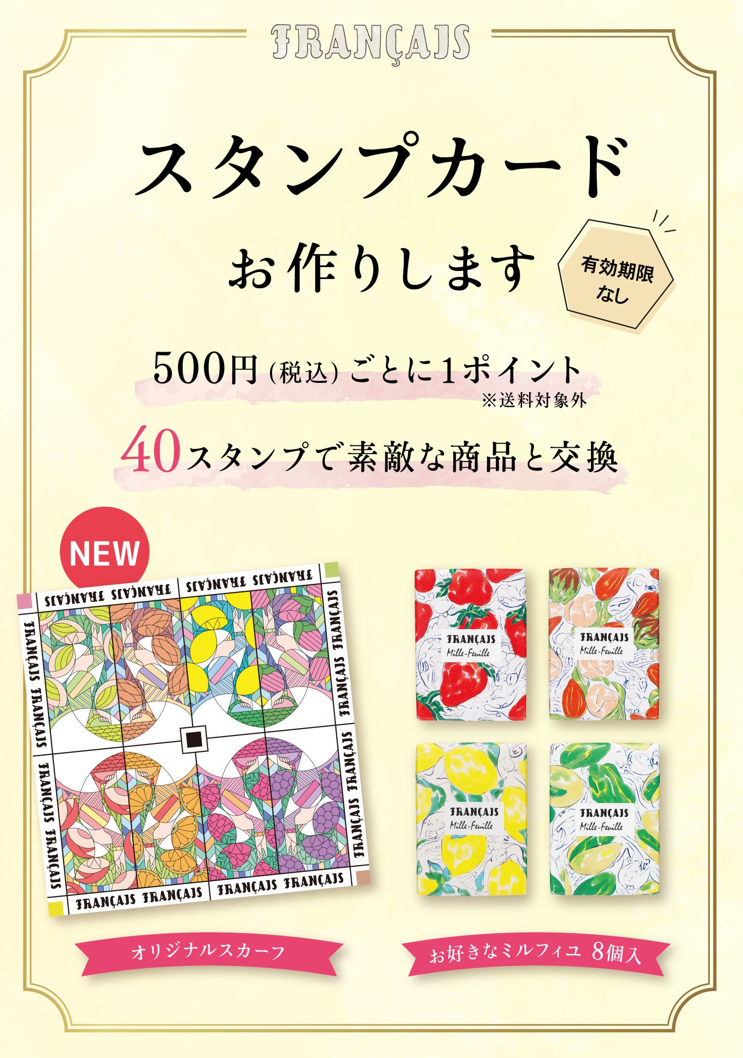 フランセでは、スタンプカードサービスを実施しております。表参道本店のオープン4周年を記念し、この度新しいノベルティが登場致します!