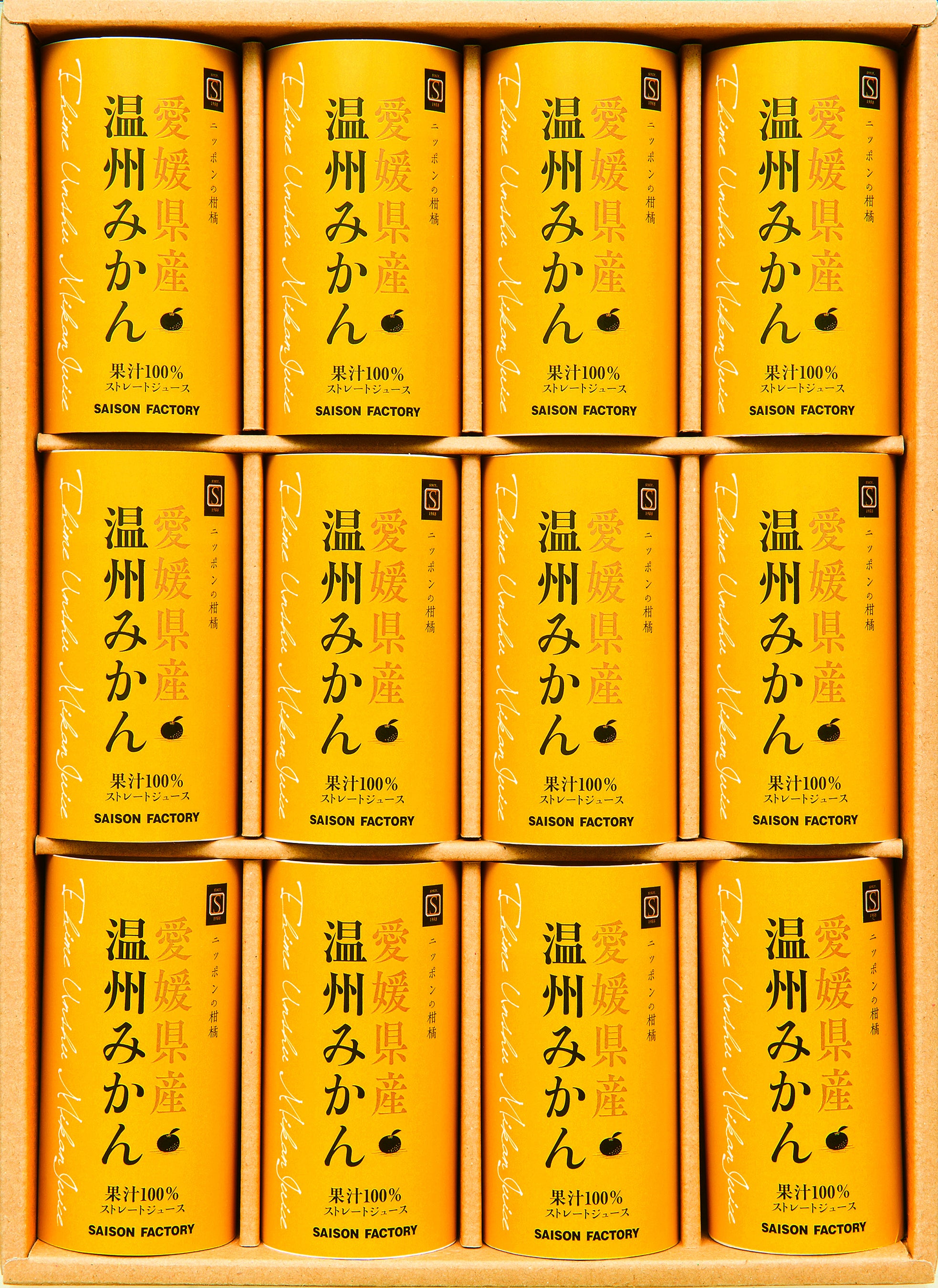ギフト説明 愛媛県産の温州みかんを使用した、果実感を味わえるジュースの詰合せ。みかんの甘い酸味・香りが楽しめるみかんジュースです。