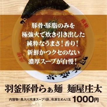 今回、麺屋庄太 羽釜豚骨らぁ麺の冷凍自販機向け商品のリリースを記念し、冷凍自販機を既に導入・これから導入を予定している事業者様向けにすぐに販売ができる商品名プレートをセットした、リリース記念パッケージを先着30社限定(1社1cs)で販売をします。