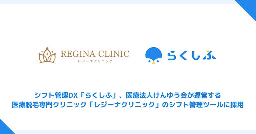 デスクレスワーカー向けのヒューマンマネジメントプラットフォームを提供する株式会社クロスビット(東京都品川区、代表取締役社長 小久保 孝咲 、以下「クロスビット」)は、医療法人けんゆう会(東京都中央区、以下「けんゆう会」)が運営する医療脱毛専門クリニック「レジーナクリニック」のシフト管理DXツールとして、「らくしふ」が全店舗で採用されたことをお知らせします。