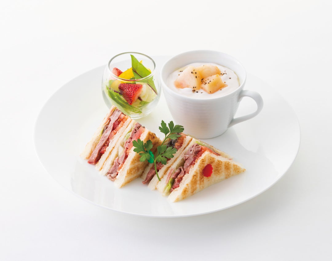 提供しています。ランチのメインはフルーツサンド、ローストビーフサンド、クラブハウスサンドなどから選べるサンド