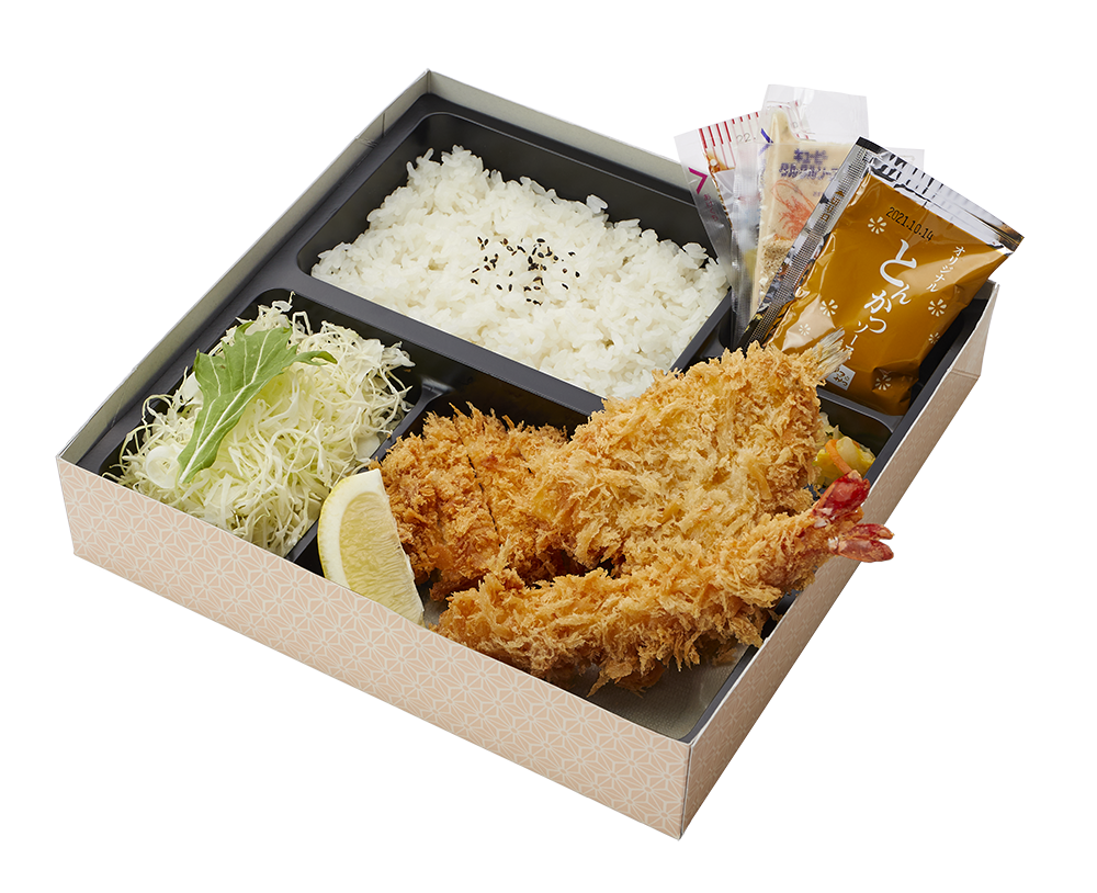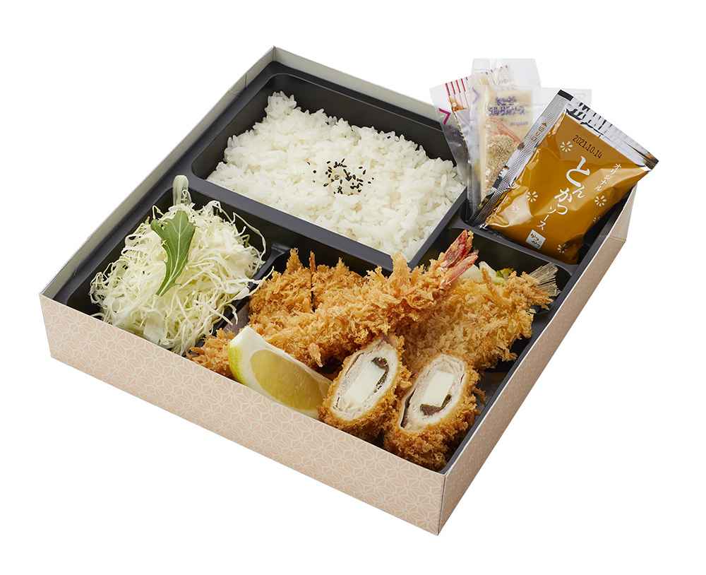 ヒレかつ(40g)・梅しそ山芋肉巻きかつ・キスフライ・海老フライ・ご飯