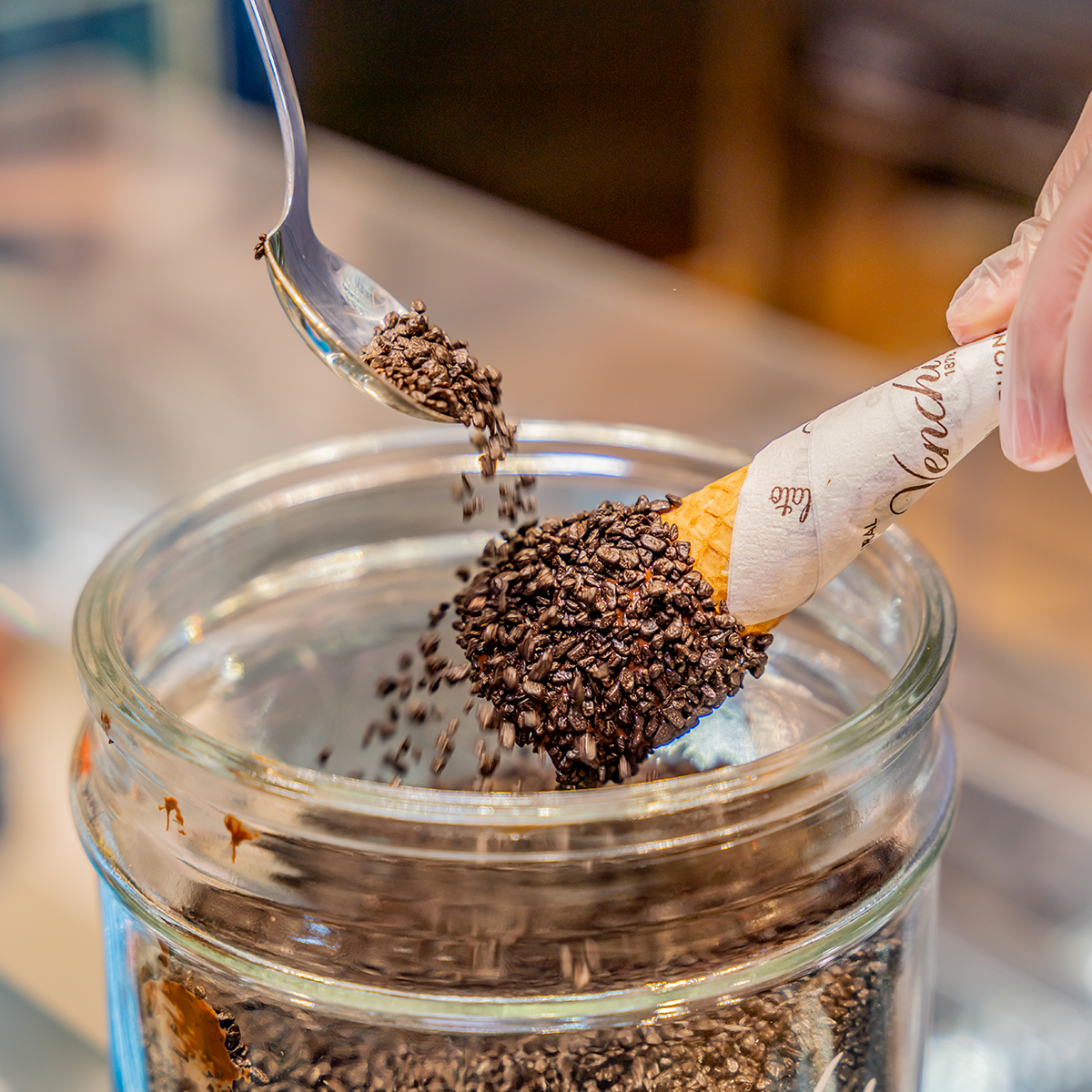 2007年からはジェラートのレシピ開発をスタート。天然由来のものを中心に原料を厳選し、合成香料、着色料、添加物の使用を抑え、鮮度にこだわって作られるヴェンキのジェラートは、多様なチョコレートのフレーバーをはじめイタリアらしいヘーゼルナッツやピスタチオなど独自の味の世界を展開しています。